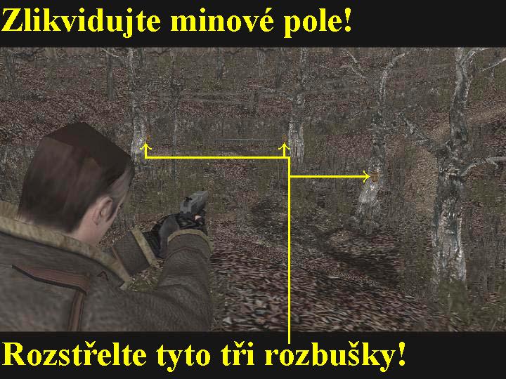 dole pod vámi. Seběhněte tam a projděte jimi, pokračujte vpřed, likvidujte