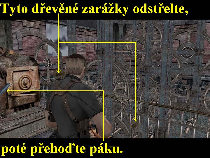 a dostanete se na druhou stranu. Zde seberte raketomet od Ady a vystřelte na