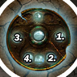 poslouží pět tlačítek pod kamennými kruhy. Zleva doprava stiskněte čtvrté,