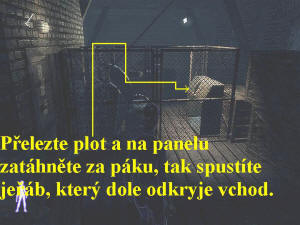 žebřících až dolů a dveřmi vyjděte ven. Pokračujte doleva, přeskočte bednu,