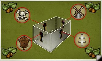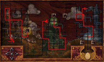 Prvá strana ti ukazuje 4 zámky alebo kľúčové miesta - katakomby, veterný mlyn,