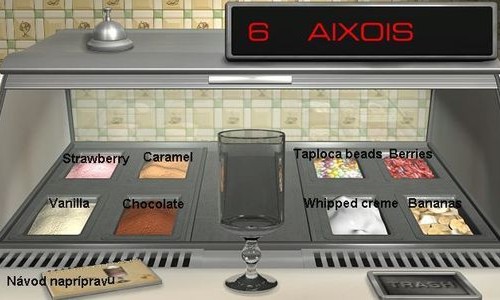 som si objednal "Creme de Glace". Potom pokračuj v rozhovore s Michel.