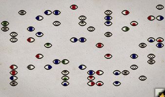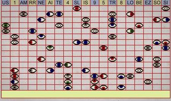 druhej strane sú riadky rôzne sfarbených očí. Na oči potrebuješ knihu kódov, kde