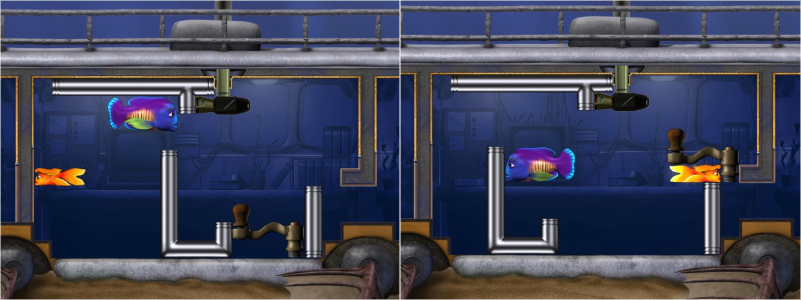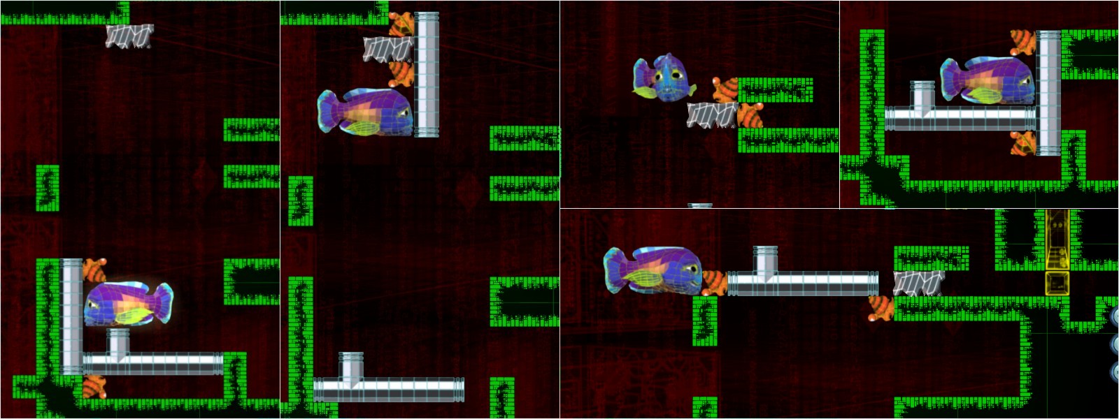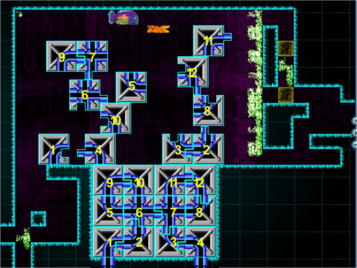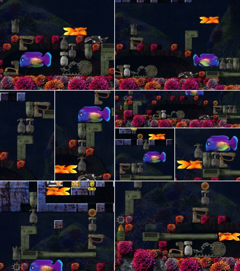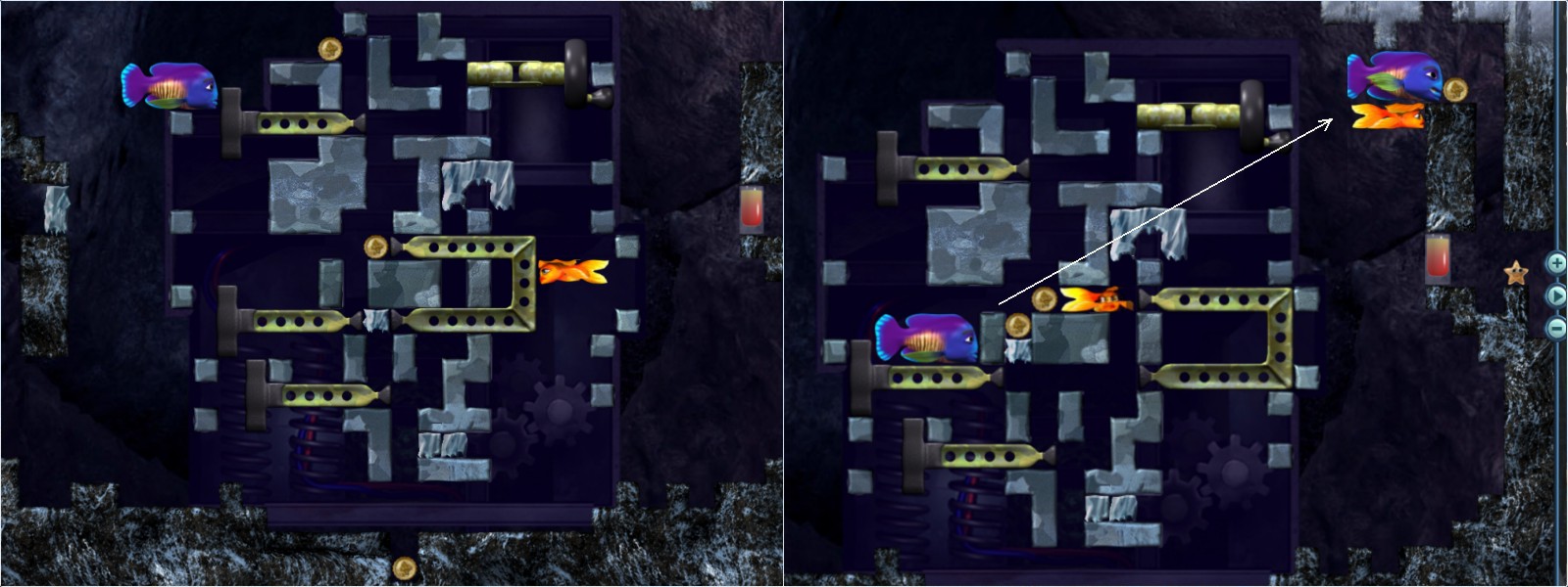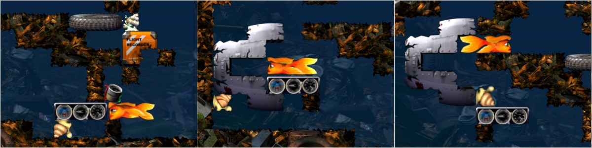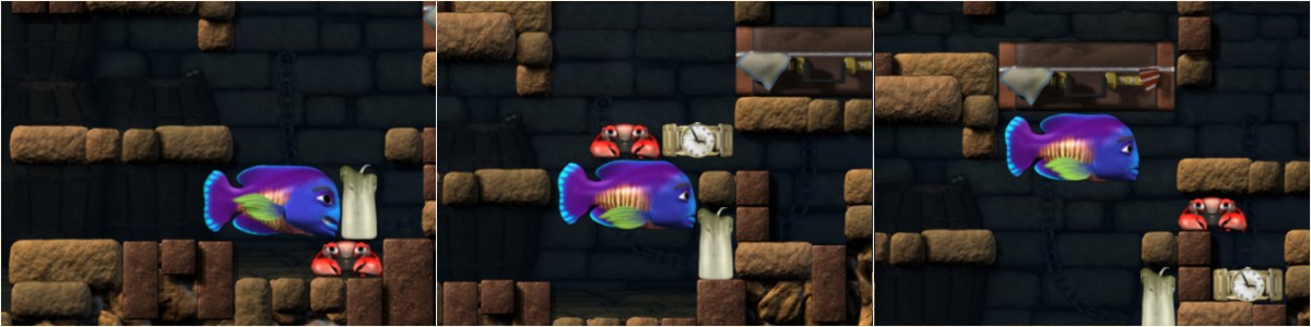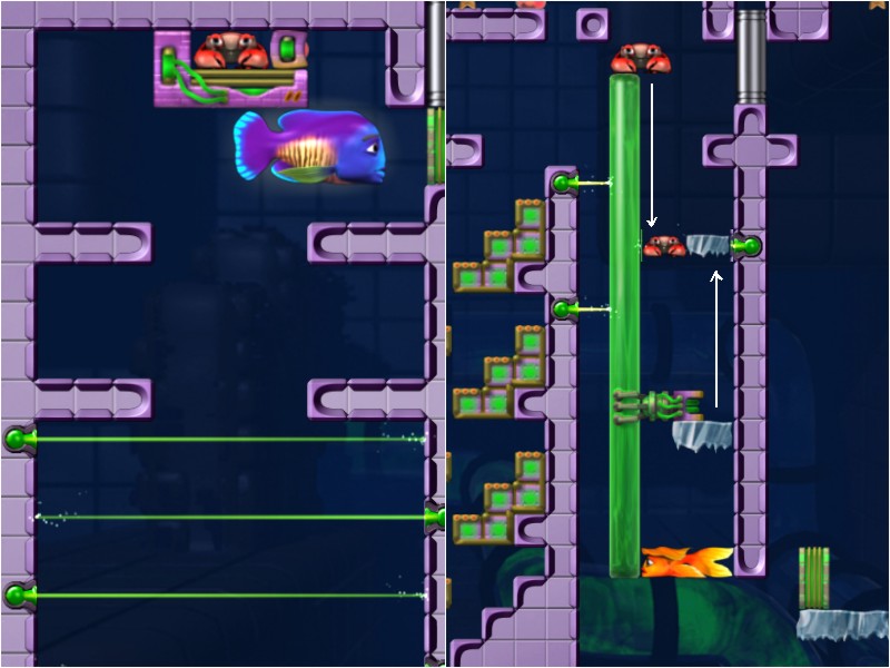 Úvodní místnost vás pouze seznámí s pohybem ryby (agentky Tiny Guppyové)