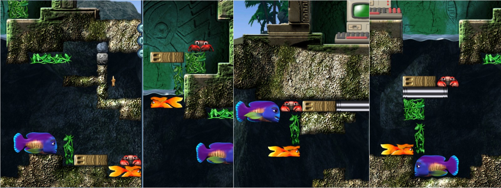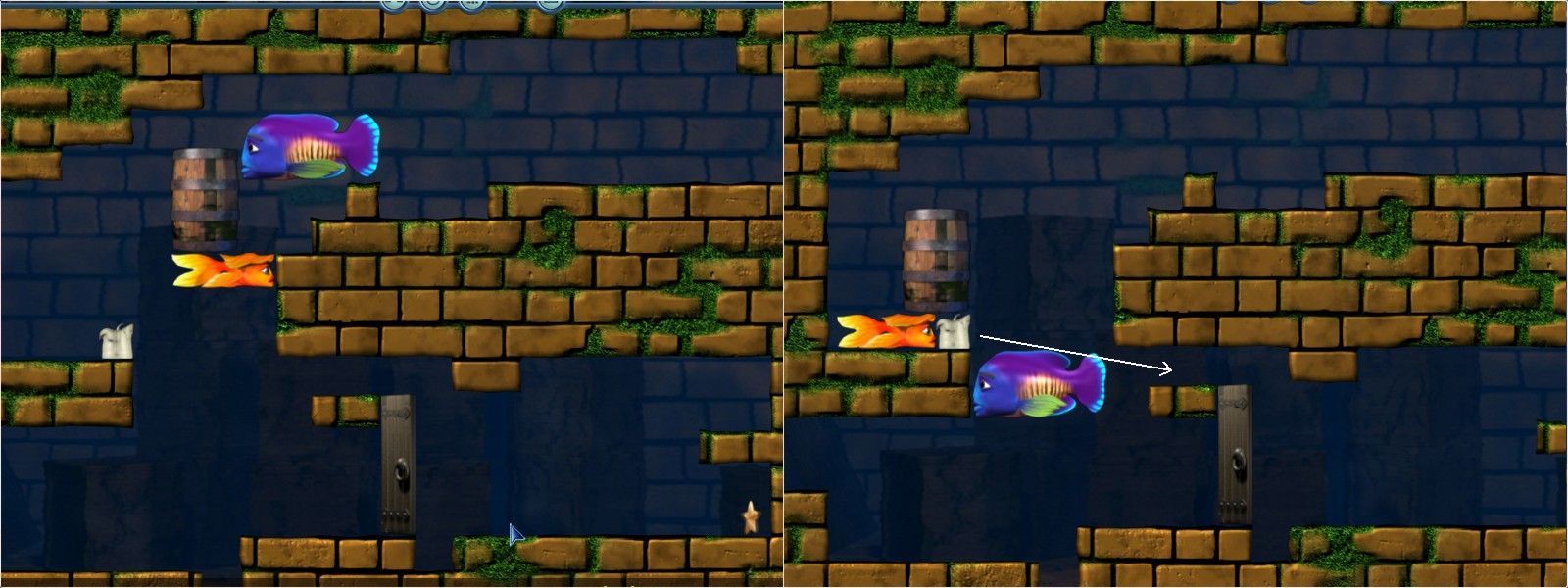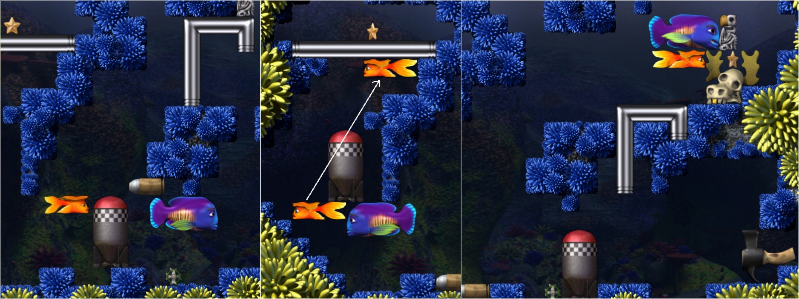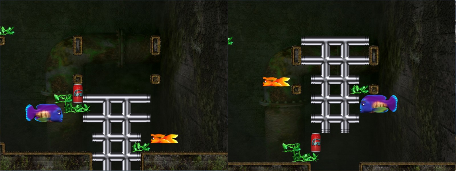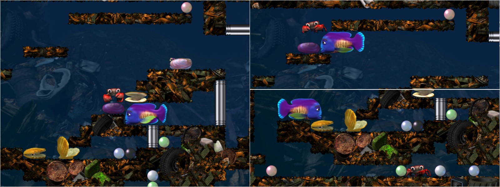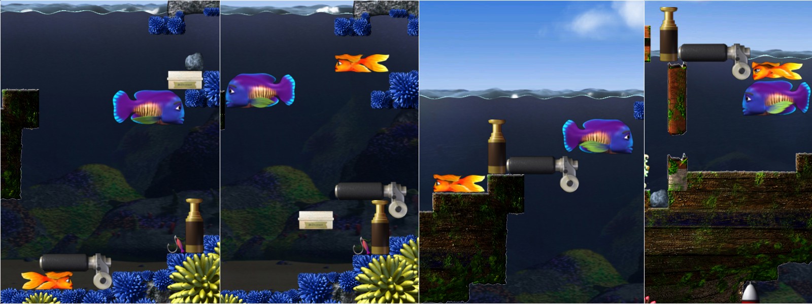 Úvodní místnost vás pouze seznámí s pohybem ryby (agentky Tiny Guppyové)