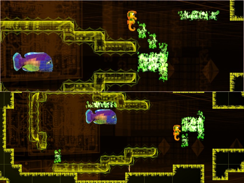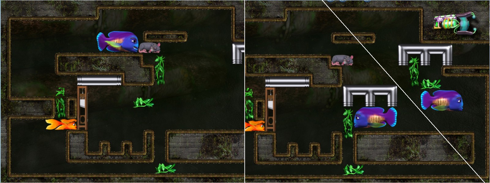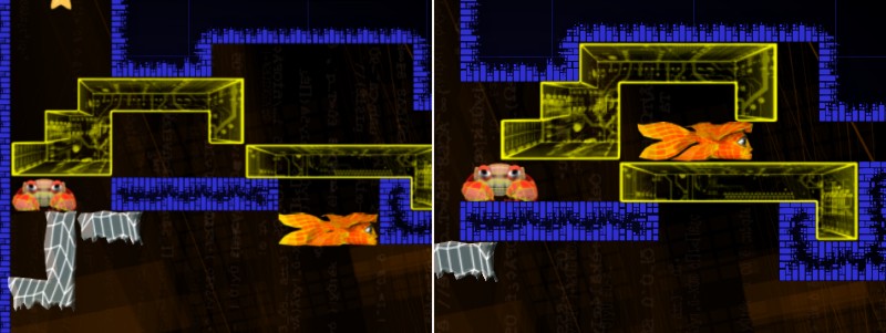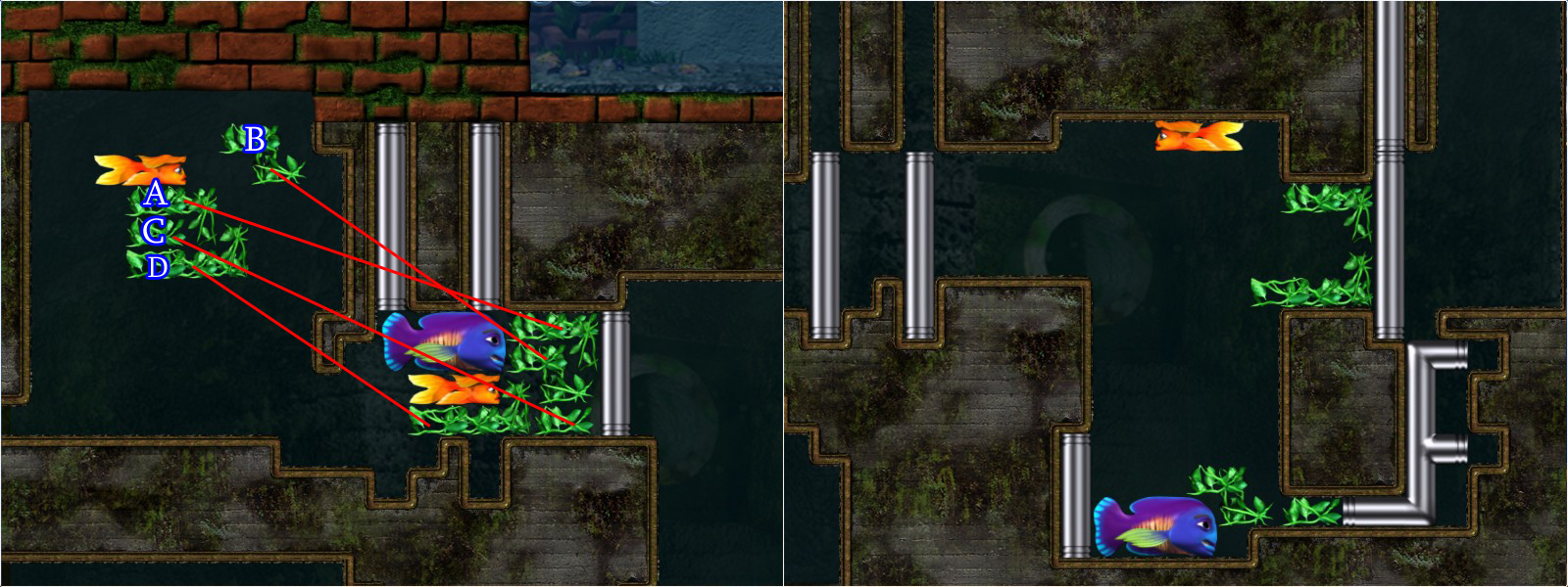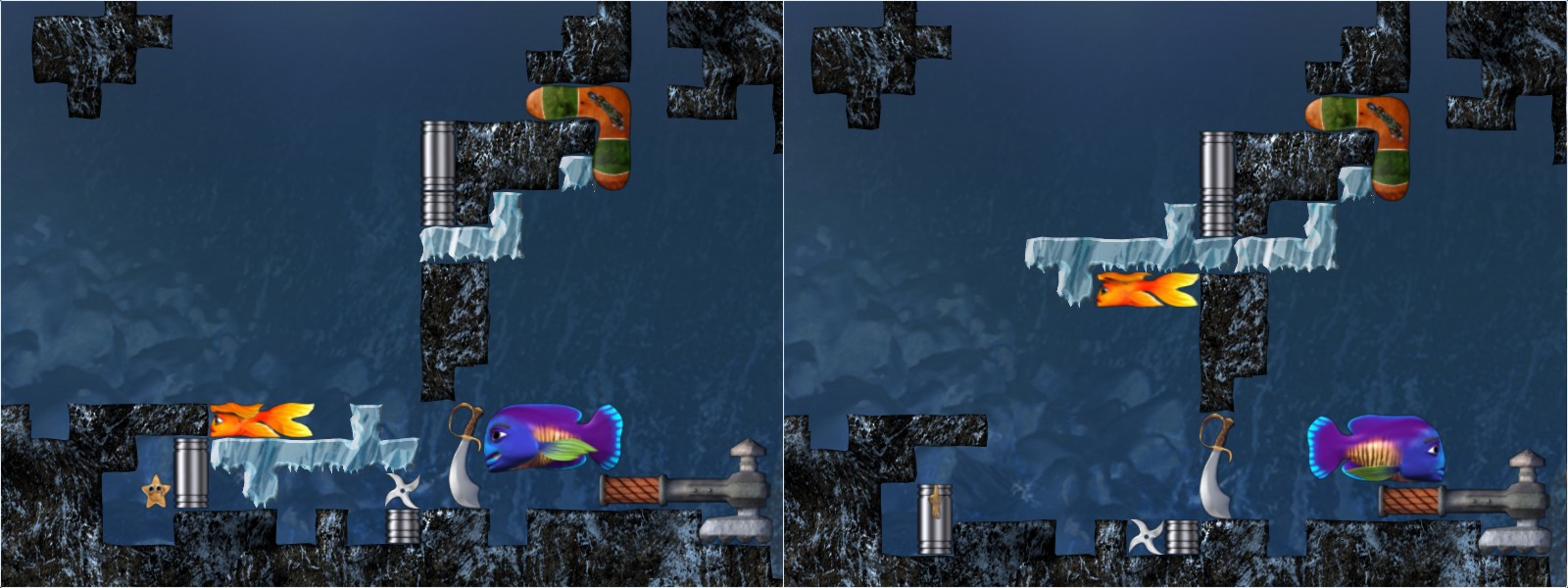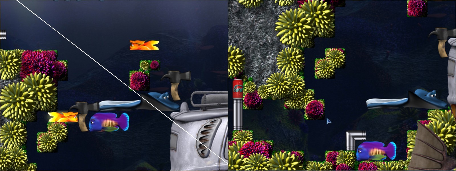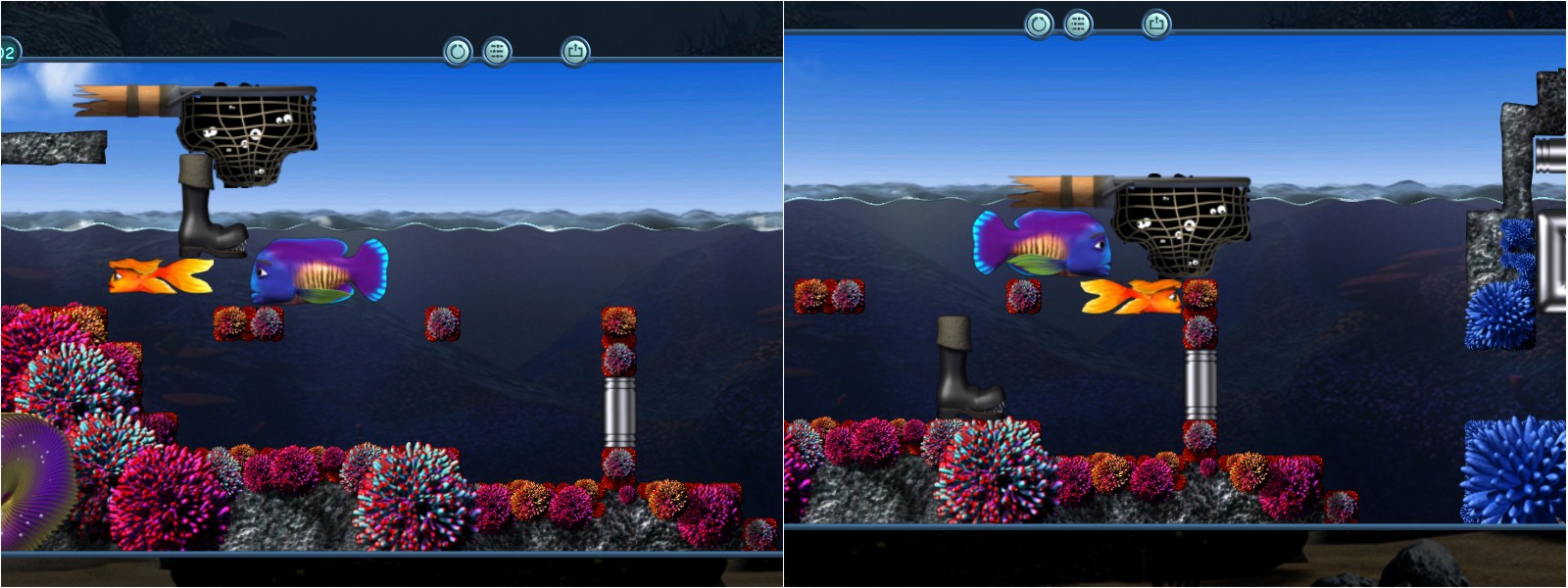 Úvodní místnost vás pouze seznámí s pohybem ryby (agentky Tiny Guppyové)