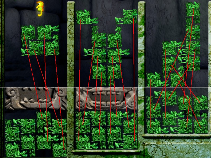 nahoru a zde zelenou doleva a poté co spadne dolu na ní pusťte žlutou a