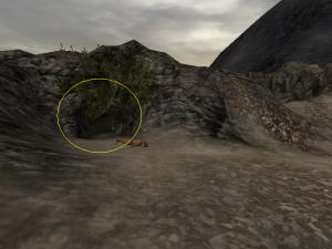 sa ku táboru s autami, prejdite skalou vľavo na druhú stranu, skryte sa za