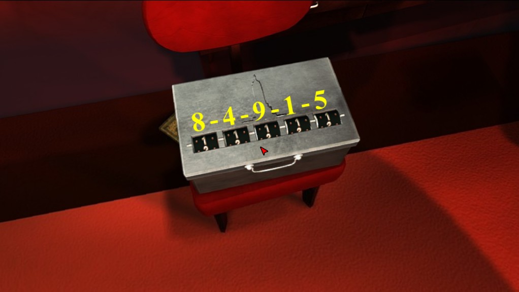 části s piánem. Zde na stolcích najdete kleštičky a mince. Oboje seberte a