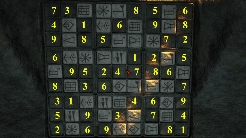 v zemi hnědý kámen který se dá stlačit a kombinace kvádrů se změní.