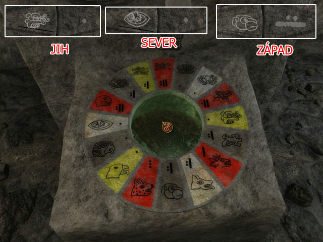 žluté. Po zadání správné kombinace se odsune velké kolo a odhalí poklad.