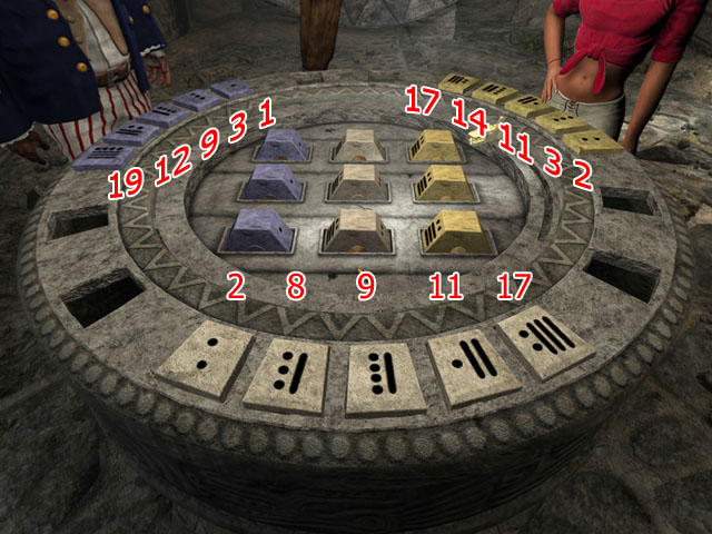 stolu je nahrazen měsíčními symboly, podobnými jako na zdi. Cílem je