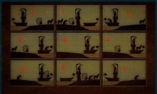 Choď naspä do jedálenského vozňa a klikni na obraz orla a objaví sa ďalie puzzle. Znova musí