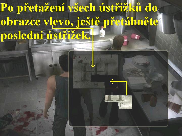Pro jistotu ještě jednou prohledejte místnost, do které jste vešli na konci první kapitoly a poté projděte zpět dveřmi do chodby. Pokračujte dál chodbou doprava a na konci chodby projděte dveřmi, vracíte se tak znovu zpět do míst, kde jste již jednou byli. Seběhněte po schodištích dolů, projděte protějšími dveřmi, postřílejte dvě bestie, popojděte vpřed a zabijte i třetí, která se k vám probourá přes zeď. Posbírejte lékárničky a všechny dostupné předměty, hlavně však baterie a náboje do pistole, na levé straně místnosti rozbijte holí skříňku a seberte třetí klíček, naproti v místnosti v rožku zasuňte postupně všechny tři klíčky do schránky boxu, z něj potom seberte Stun Gun (super pistoli), projděte dírou ve zdi, vložte baterie do panelu a projděte přes další dveře. V kuchyňce poberte vše, přepněte se na Amy (ženy jsou přece chytřejší, než muži) a přistupte k pultu s papírovými listy, který aktivujte. Vyčkejte chvíli, tak se vám zpřístupní rébus, vaším úkolem je poskládat jednotlivé útržky do prázdného místa tak, abyste vytvořili celá správný obraz (obr.1). Získáte tak schéma, jak máte o chvíli později přestavět regály, abyste mohli pokračovat dál. Poté se řiďte radami na obrazovce, přepínejte se klávesami F1, F2 a F3, tak zjistíte, že jste získali další předměty v inventáři a také dva nové partnery, slečnu Mei a mladíka Coreyho, na které se zatím ale nemůžete přepojovat. Poté inventář vypněte a vracejte se zpět, vstupte přes díru ve zdi do místnosti, kde zastřelte dvě bestie. Pokračujte doleva a známou pravou uličkou jděte až na konec, kde vlevo projděte opět vraty, ocitli jste se nyní v rovněž známé místnosti s regály, kde jste již zabíjeli malé bestie. Pokud jste je tedy před tím ještě všechny nezlikvidovali a sedí vám některé na regálech, přepněte se na Kennyho (muži jsou přece silnější na fyzickou práci) a pohněte těmi regály, na kterých ještě bestie sedí, tak je shodíte na podlahu a ubijte je holí. Pokud jste se tedy všech bestií zbavili, přistupte tedy k prostřednímu regálu a přetáhněte jej dozadu až k oknu a poté zcela doleva, poté přetáhněte pravý regál úplně doleva, dozadu a úplně doprava, nakonec přistupte k poslednímu regálu, který přetáhněte až úplně doprava. Tak se vám spustí dolů schodiště, po kterém vyběhněte až nahoru, odbočte doprava a jděte stále vpřed, v uličce si prohlížejte nástěnky a obrazy po levé straně a na konci projděte dveřmi. Tak se spustí krvavá animace, spatříte profesora a napadne vás pes, profesor bude postříkán krví a animace končí. Copak se to asi s vámi stalo? No buďte trpěliví, snad se to dozvíte v příští kapitole. V reálu se pak ocitnete opět na známém místě, kam přijedete autem, po vystoupení z auta ale zjistíte, že nyní budete pokračovat dál přepínáním se mezi Coreyem a Mei. Přepněte se tedy na Coreye, jděte vpřed a seberte kyj, poté za Mei seberte hokejku, jste nyní oba dva jakžtakž ozbrojeni. Vydejte se vpřed za Coreye, na konci zabočte doprava, popojděte vpřed, vlevo prozkoumejte větrák na zdi, dostanete pecku, až se vám protočí panenky a žuchnete sebou na zem. Tím tuto kapitolu zakončíte, nezapomeňte si ji znovu uložit do menu hry.
