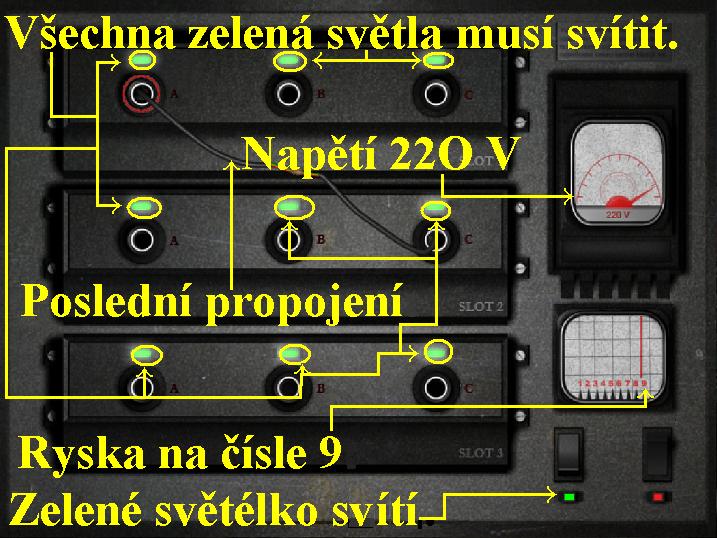 Vraťte se tedy rychle do dveří, ze kterých jste před chvílí společně s Ebrou vyběhli, za nimi hned v první místnosti zkuste aktivujte hák na zdi, tak umístíte na vaši ruku tajemný amulet, ale také přivoláte bestii, kterou musíte skolit, nejlépe a nejrychleji z ručního kulometu, měli byste ho mít již ve vašem inventáři. Poté již srdce (1) z háku můžete sebrat, vyjděte ven a ve vedlejší místnosti seberte z kavalce dokument, který si v inventáři přečtěte. V posledních dvou místnostech již nic k sebrání není, takže se vraťte zpět na vězeňský dvůr, uhýbejte před kužely světlometů, jděte doprava a uprostřed dvora vlevo použijte na červený bod váš znak z inventáře, tak se vám otevře cesta vpřed. Pokračujte tedy dopředu a nastupte si do výtahu, který s vámi sjede dolů, kde si vystupte. Jděte vpřed a projděte protějšími dveřmi, hned za nimi si vstupem na známý kruh hru uložte. Pokračujte dál dveřmi vlevo, v chodbě zabijte útočníky, za protějšími dveřmi další, vlevo seberte knihu, všimněte si obrazu na zdi (1), vstupte do dalších dveří vlevo. Nyní se raději vraťte, jděte do dveří vpravo, v další místnosti je na zdi srdce (2), zkuste je sebrat, ale půjde to až poté, co zabijete bestii, která ho hlídá. Nyní se vraťte a pokračujte dál původním směrem, projděte dveřmi, za protějšími dveřmi pobijte stráže a všimněte si obrazu (2), vraťte se a vyběhněte po schodišti až nahoru. Vstupte do dveří vpravo, jedinými přístupnými dveřmi pokračujte dál, pobijte strážné, v rohu seberte lékárničku. Kolem ní projděte dveřmi a všimněte si obrazu (3), vraťte se a pokračujte dál dveřmi vlevo, seběhněte dolů po schodišti, vraťte se zpět nad schodiště a pokračujte dál levými dveřmi, vstupte do dveří vpravo, tak jste se ocitli v knihovně. Zde seberte knížku, v inventáři si ji přečtěte, také seberte stříbrný klíč. Vraťte se na chodbu, vstupte do protějších dveří, všimněte si modrého obrazu (4). Všechna místa, kde se nacházejí mnou zmíněné obrazy, si dobře zapamatujte, sem se budete muset později vracet. Vraťte se na chodbu, projděte jí, vstupte do protějších dveří, zlikvidujte strážce, posbírejte ozdravné balíčky, dál pokračujte přes druhé dveře. Ocitli jste se v místnosti se třemi ciferníky, připomínající hodiny, snad to skutečně jsou, ale nějaké podivné0000010150_n08.jpg (69425 bytes) (obr.8). Aktivujte je, tak vidíte, že každé ukazují jiný čas, budete tedy muset nastavit všechny tak, aby ručičky všech tří ukazovaly na dvanáctku. Posunujte se tedy pod ně pomocí kurzorových kláves a akčním tlačítkem měňte čas. Jistě jste si všimli, že ne všechny ručičky při posunu se pohnou stejně, musíte tedy zkoušet chvíli, jak na to, konečný výsledek se určitě dostaví. Jakmile se vám podaří všechny ručičky nastavit na dvanáctku, dole v podlaze se vám otevře poklop, seběhněte tedy po schodišti dolů a projděte dveřmi. V místnosti se nachází srdce (3), jistě již víte, že jak se jej pokusíte sebrat, napadne vás jej hlídající bestie, skolte ji a teprve teď můžete srdce bezpečně sebrat. Projděte dalšími dveřmi, v místnosti po pobití strážných seberte krumpáč, vraťte se a jděte chodbou k místu, kde se nalézá zábrana z laťoví, přes kterou nemůžete dál. Stačí ale na ni použít vámi sebraný krumpáč a máte vystaráno, popojděte vpřed a aktivujte přístroj před vámi na stěně, jistě jste již uhodli sami, že na vás čeká další „vylousknutí“ rébusu. Přístroj tedy aktivujte, tak uvidíte že jsou uvnitř klávesy, na každé straně tři, tedy celkem se jich zde nachází dvanáct. Na tyto klávesy tedy budete muset klikat, tak se budou v okýncích objevovat segmenty, které je nutno přetáčet a uspořádat tak, aby všechny, je jich celkem devět ve třech řadách po třech a připomínají vám určitě činky, měly každá konec pomyslné činky nahoře a dole. Možná si s tím budete muset chvíli pohrát, ale zase tak moc to těžké není, konečný výsledek ale stojí zato0000010150_n09.jpg (73307 bytes) (obr.9), otevřeli jste si totiž před vámi stěnu a zpřístupnili si prostor, přes který nyní musíte pokračovat dál vpřed. Ocitli jste se v hrůzostrašně vyhlížející místnosti na železné lávce, sbírejte ozdravující balíčky, likvidujte poletující bestie, plivající na vás zelenou jedovatou, tudíž vás zraňující plazmu, na konci železné lávky projděte do místnosti dveřmi. V místnosti uprostřed se nachází na podlaze otvor, z kterého vychází zlatý plamen. Ve čtyřech rozích místnosti se nacházejí jakési podivné desky, v každé je zapíchnutá dýka, všechny čtyři dýky tedy z desek seberte. Tuto lokaci si rovněž dobře zapamatujte, je to finální místo této kapitoly. Nyní se vracejte stejnou cestou nazpět až do místnosti, kde jste nastavovali ciferníky, odtud chodbami až nad schodiště, seběhněte po něm dolů a hru si vstupem na kruh uložte. Jděte do dvoukřídlých dveří mezi schodišti a projděte jimi, na mřížovou branku použijte klíček z inventáře, tak ji otevřete a vstupte dovnitř. Seberte ze stolu blok s tužkou, vyjděte zpět, po okolí posbírejte munici a ozdravné balíčky, po dalších schodech seběhněte až dolů, seberte granáty a projděte dveřmi. Zde se nalézá poslední srdce (4), které seberte, nejdříve budete ale opět muset strážící je bestii. Nyní tedy již máte všechny potřebné předměty k tomu, abyste se s touto misí se ctí vypořádali. Nebudu vás tedy vodit „za ručičku“ a podceňovat vaši inteligenci, popíši vám tedy pouze v kostce, co je zapotřebí udělat. Na všechna místa s obrazy jsem dá už upozornila, takže nyní musí