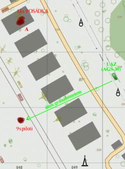 - položte nálože vedle hangáru - značka A a B - odstraníme tak piloty a posádků dřív než nastoupí do svých vozidel