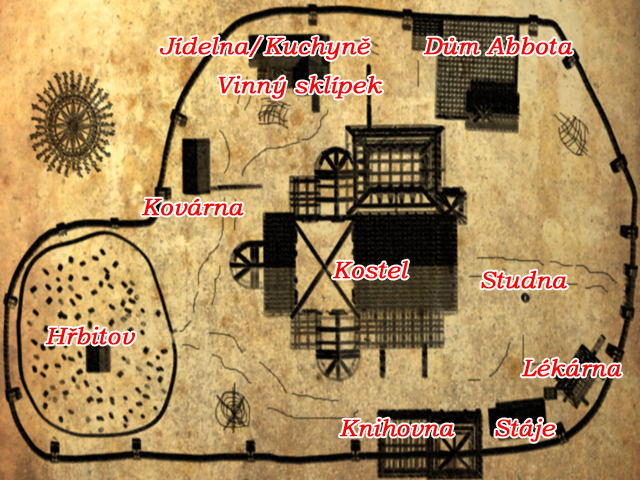 dialogy a v opatství pak můete vyuívat pomocí klávesy M mapu a přesouvat
