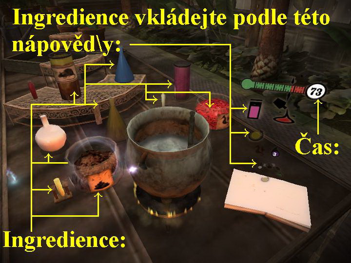namíchat ten správný lektvar, přičemž je nutné někdy kotlík nejdříve zahřát,