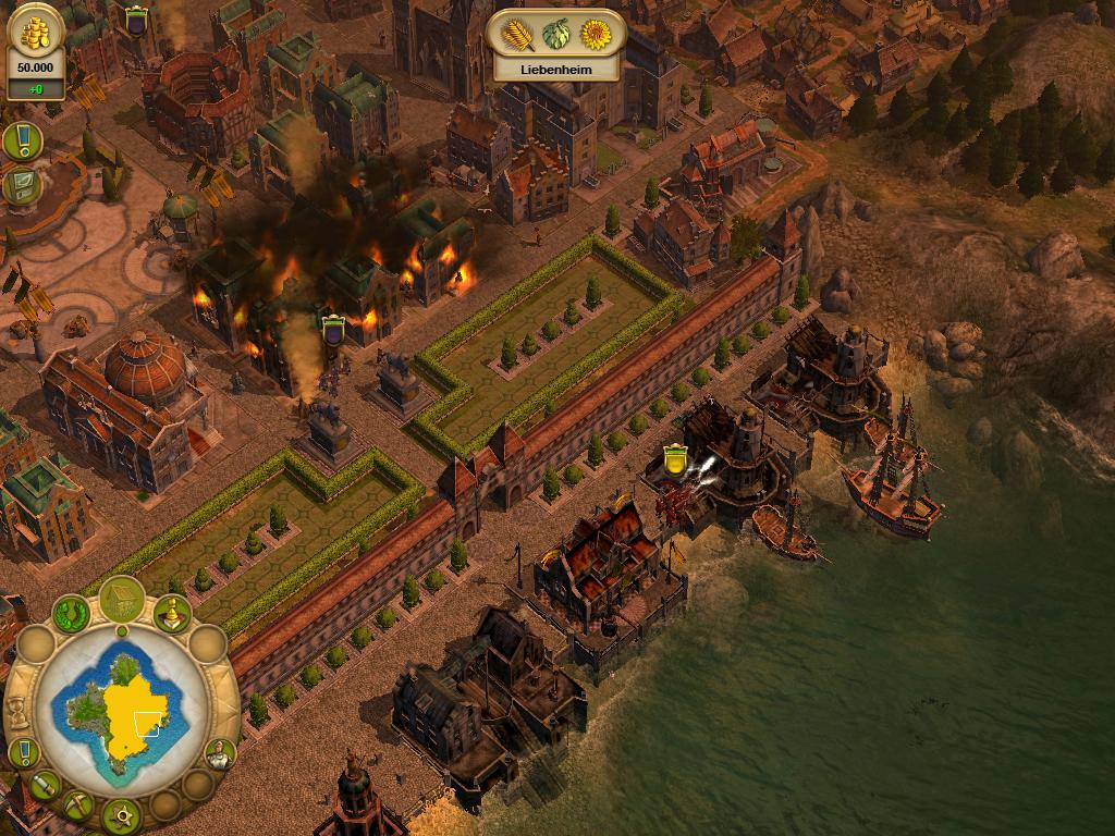 nechá pouze ostrov s pevností. Na něm stále vyrábí lodě a boje u