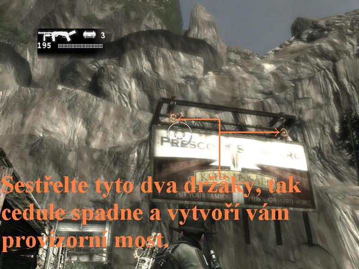 padacího mostu. Vstupte na něj, jděte a na jeho konec, odtud rozstřelte před