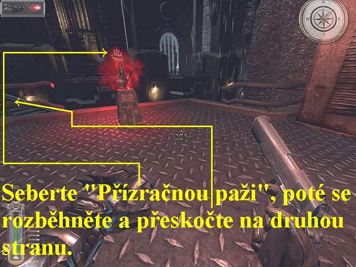 sluebníky, pokračujte vpřed, na nejuím místě vpravo přeskočte propast,