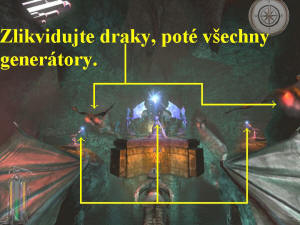 stále vpřed. Nyní musíte prolétnout celým okolím a sestřelit vechny generátory,
