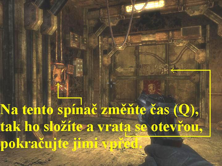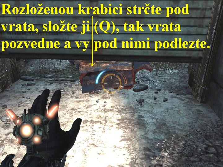 vpravo, projděte dveřmi. V místnosti pak seberte munici, vyberte bednu, ustřelte
