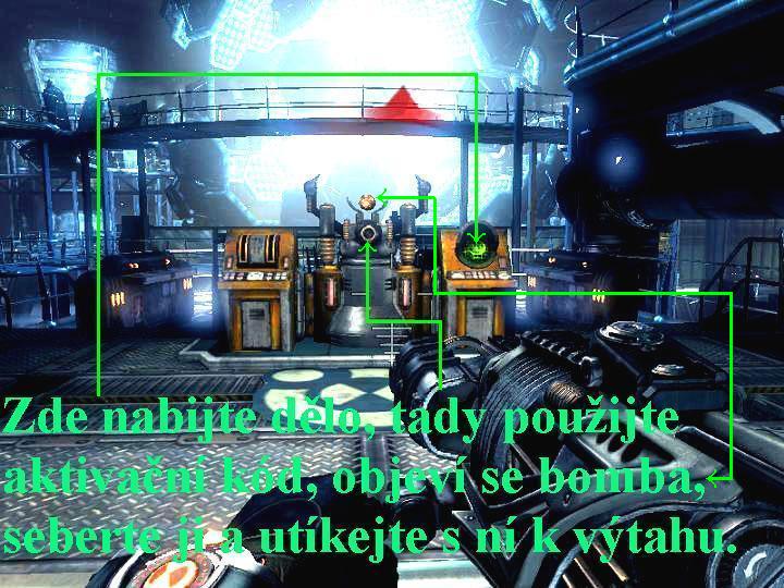 také, že k nabití děla je zapotřebí znát bezpečnostní kód. Jděte tedy po rampě